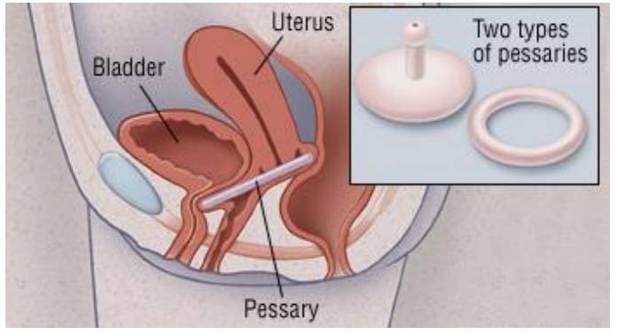 A vaginal pessary is a removable support device that is inserted into the vagina to function as a supportive structure to keep in place the uterus (womb), and/ or bladder, and/or the rectum, or the vaginal vault (if you have had a hysterectomy).